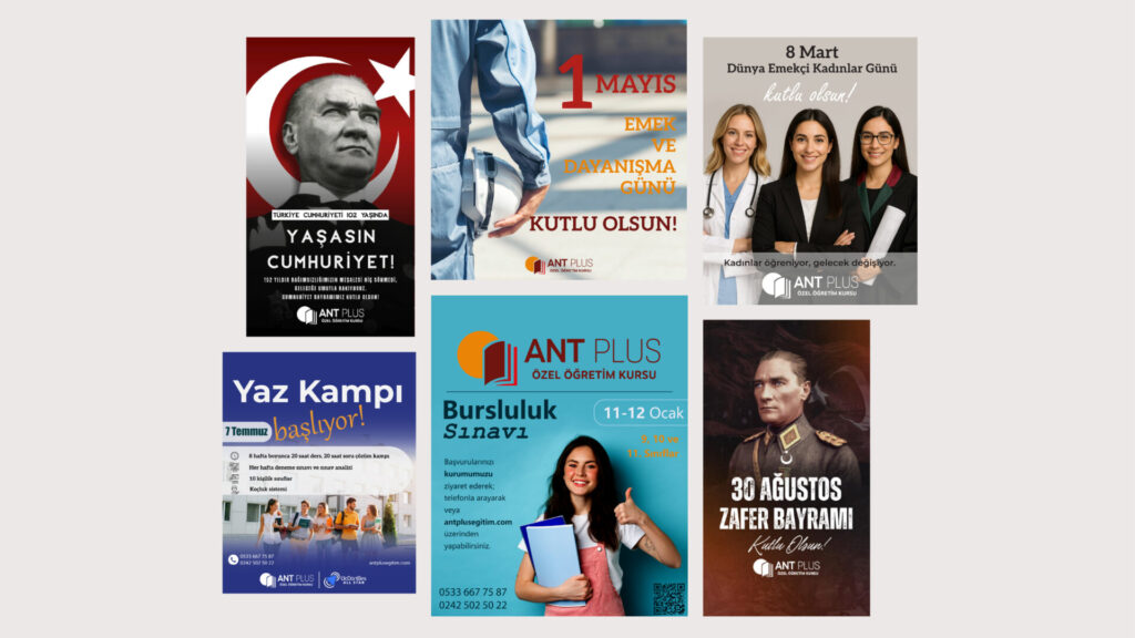 Ant Plus Özel Eğitim Kurumları için sosyal medya ortamlarında paylaşılmak üzere çeşitli afiş, gönderi ve reels videoları hazırladım.